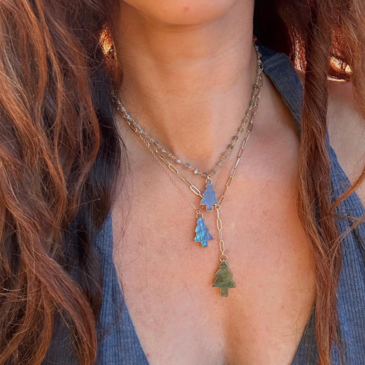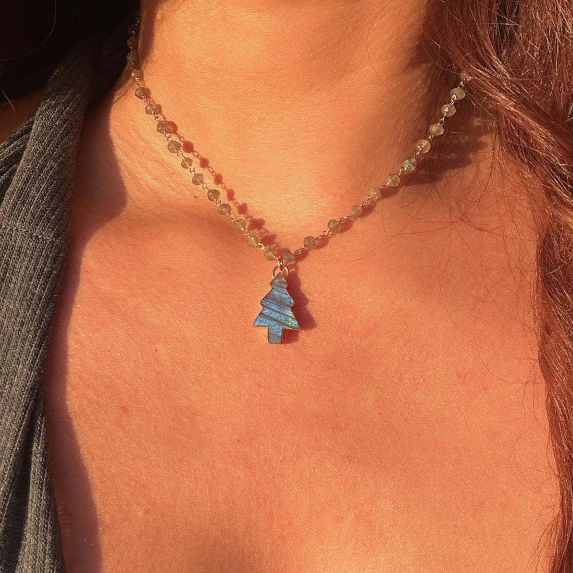 Labradorite Christmas Tree Necklace: Pine tree, evergreen tree necklace